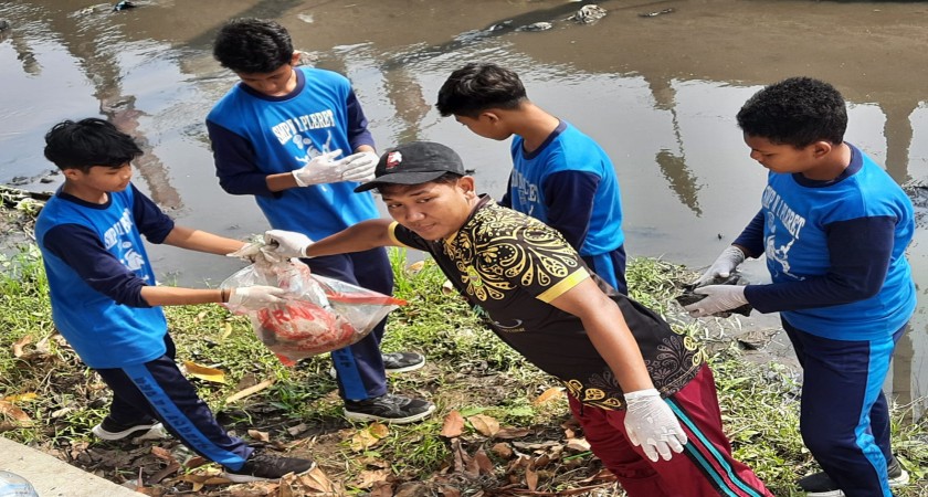 Sementara para siswa dari SMP N 1 Pleret segera mengambil bagian untuk ikut terjun ke sungai membersihkan sampah bersama unsur santri dan masyarakat umum lainnya. Semoga kegiatan ini bisa memupuk kepedulian dan kesadaran akan lingkungan yang bersih dan sehat bagi para siswa. Hebat lah para siswa dan guru Spersa…….Jaya...jaya…jaya.