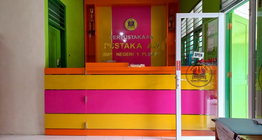 Membaca akan membantumu menemukan dirimu. Ayo Kunjungi Pustaka Aji, Perpustakaan SMP Negeri 1 Pleret.
